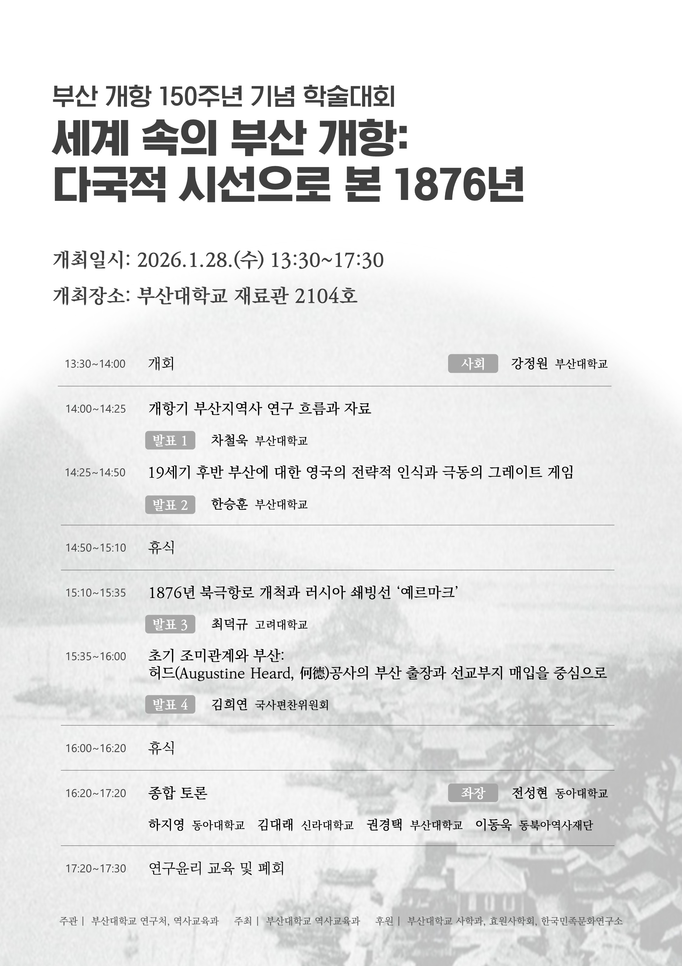 부산 개항 150주년을 기념하여, "세계 속의 부산 개항: 다국적 시선으로 본 1876년"이라는 주제로